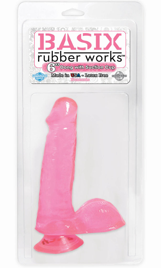 Basix Rubber Works 6" Dong with Suction Cup Pink Pipedream has put a new twist on a classic product to bring you the best possible rubber made in the USA. Pipedream's American made rubber is 100 percent phthalate and latex-free, environmentally safe and hypoallergenic. We hope you enjoy using this...