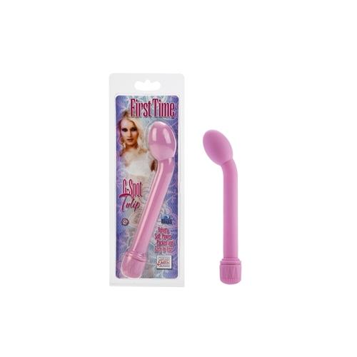 First Time G Spot Tulip Vibe Pink. Velvety soft pleasure products designed for first time or experienced users. Make it a memorable experience with the First Time Collection! Velvety soft, power-packed, and easy-to-use. Perfectly angled G-spot stimulator. Multiple-speed class vibrator. Phthalate free, non-toxic materials ABS plastic with polyurethane PU Cote....