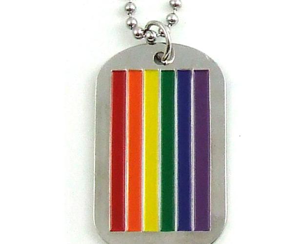 Gaysentials Pride Goods Military ID Tag Necklace. This military ID tag necklace is made from durable enamel to hold its vibrant colors. The ID tag hangs from a 21 inches adjustable ball chain necklace. To adjust just unhook and cut down to desirable size. Celebrate Gay Pride with a fab...