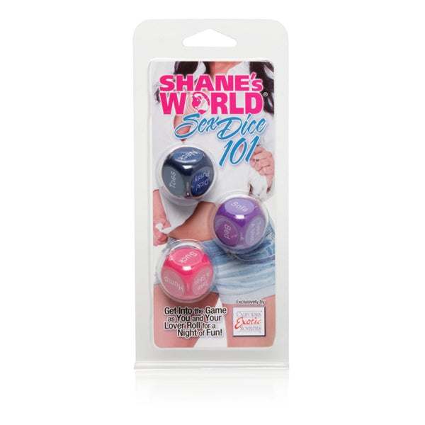 Shane's World is the leader in reality adult entertainment. With years of experience producing college reality porn, this irreverent company has created a stir wherever they show up with camera is rolling! All of their toys have been endorsed by the ladies of Shane's World! Shane's World Sex Dice 101 Game Take a class together! Roll the 3 dice for a night of sexy fun. Category: More Fun, Gag Gifts & Party Favors. Shane's World Sex Dice 101 Game is a registered trademark for California Exotic Novelties. 16.