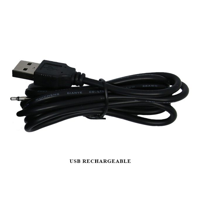 Features: 12 functions of vibration, double motors, USB rechargeable, waterproof, silicone. Size 8.27 inches in length by 1.38 inches in width.