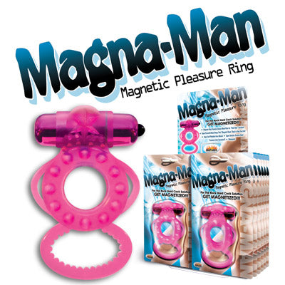 Magna Man Magnetic Ring Magenta HO2338. Magna Man is the ultimate in stimulation innovation! Electrify your partner into an erotic frenzy with this super strong magnetized jelly cock ring! Promotes Intense powerful erections by drawing blood flow down to the penis, there by promoting powerful intense orgasms at the same...